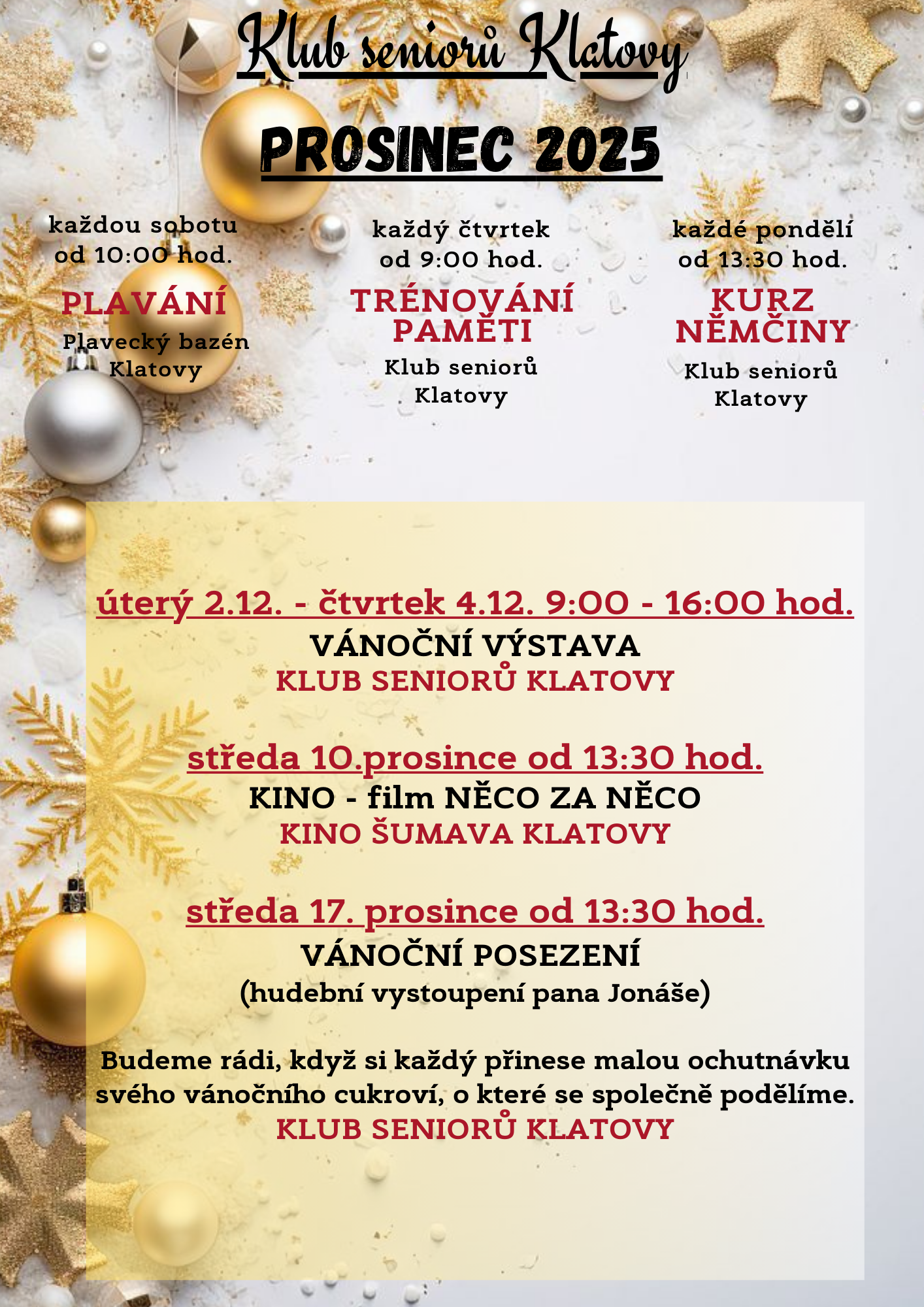 Klub seniorů slouží občanům města Klatovy a spádových obcí.
